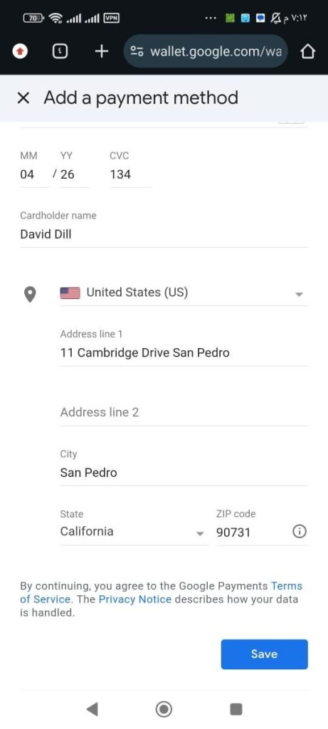 وبعدين رح تدخل لجوجل بلاي وتحاول تضيف بطاقة ماستر مع عنوان امريكي ونحن وفرنا هالشغلتين